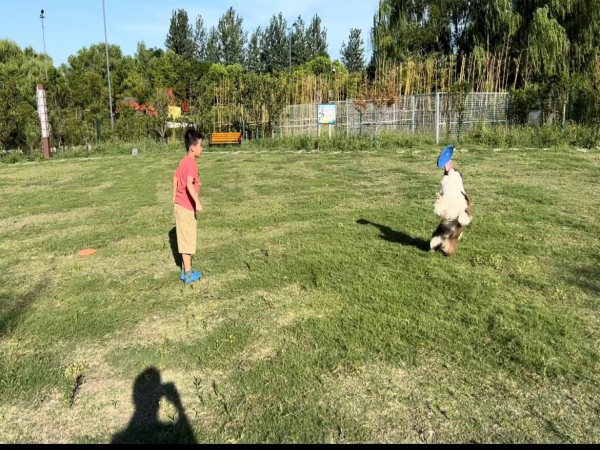 下午3點(diǎn),微風(fēng)習(xí)習(xí),氣溫舒適,狗狗家長(zhǎng)們陸續(xù)帶狗狗來(lái)到公園,公園專業(yè)寵物訓(xùn)練師也開(kāi)始解答一些主人在犬只飼養(yǎng)上的疑惑。在訓(xùn)練師的指導(dǎo)下,“小主人”和狗狗的飛盤(pán)游戲也玩的有模有樣。