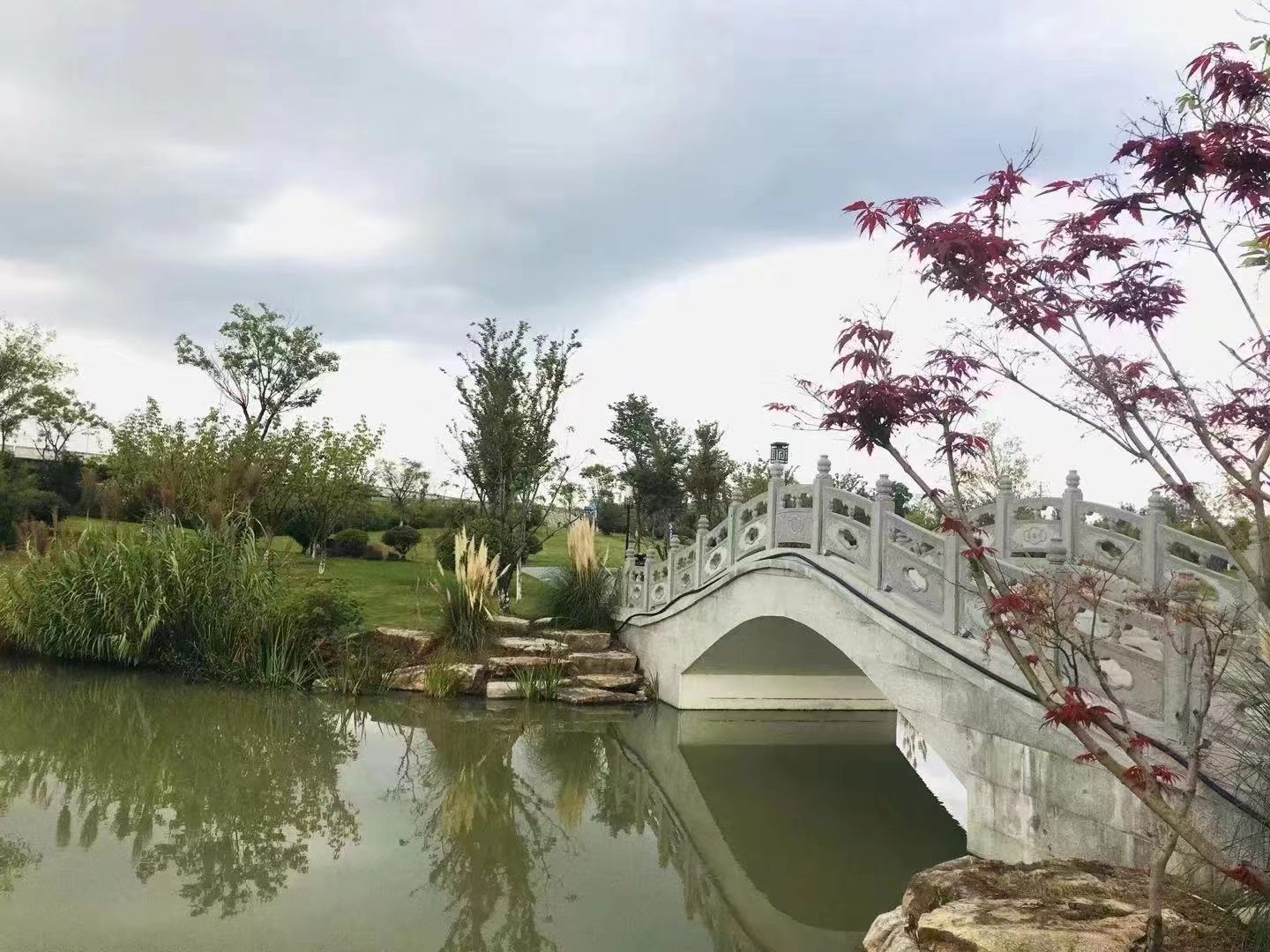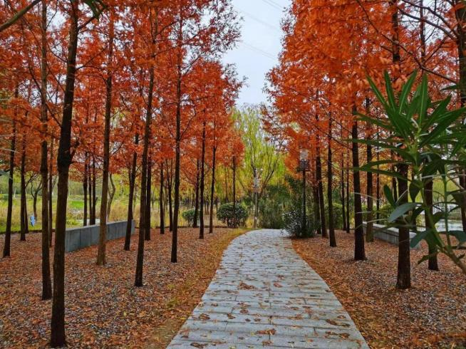 紅葉襯著綠樹,小橋伴著流水,既有曲徑通幽之妙,也有寬闊草地之美。公園集生態(tài)休閑、觀光旅游等功能為一體,游客可以在公園內(nèi)擁有濕地旅游、白果采摘、戶外燒烤等豐富多樣的出游體驗。