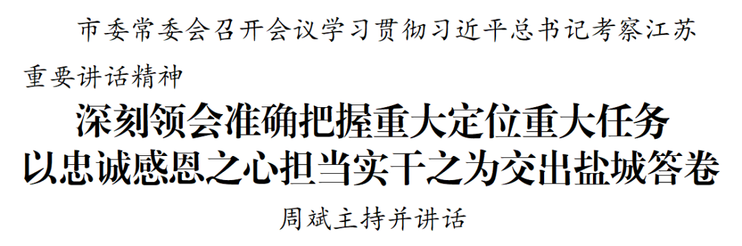 市委常委會(huì)召開(kāi)會(huì)議學(xué)習(xí)貫徹習(xí)近平總書(shū)記考察江蘇重要講話精神